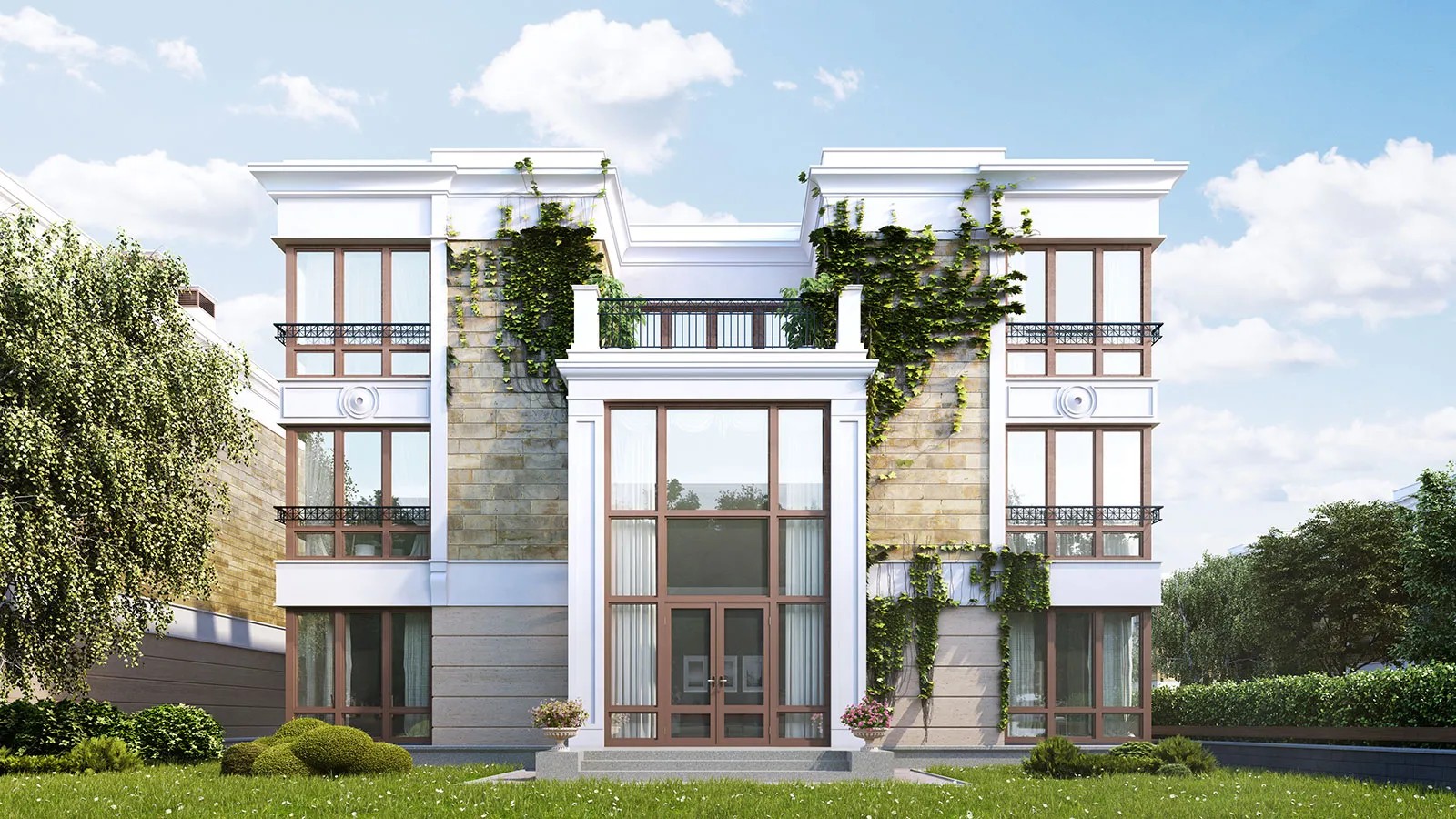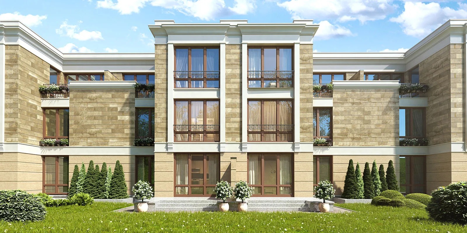 - от 5 до 10 квартир в одном доме. В 6 квартирах собственный выход на лужайки